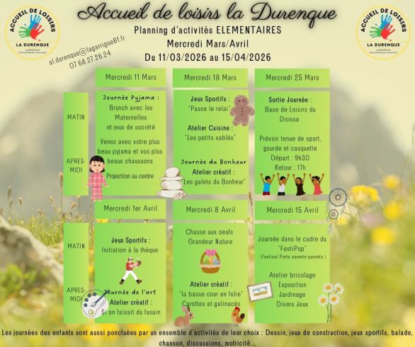 Depuis septembre 2023, l'Accueil de Loisirs Associés à l'Ecole (ALAE - mercredis en période scolaire) et l'Accueil de Loisirs Sans Hébergement (ALSH - vacances scolaires) seront gérés par la commune de Lagarrigue en partenariat avec les communes de Noailhac et Valdurenque.