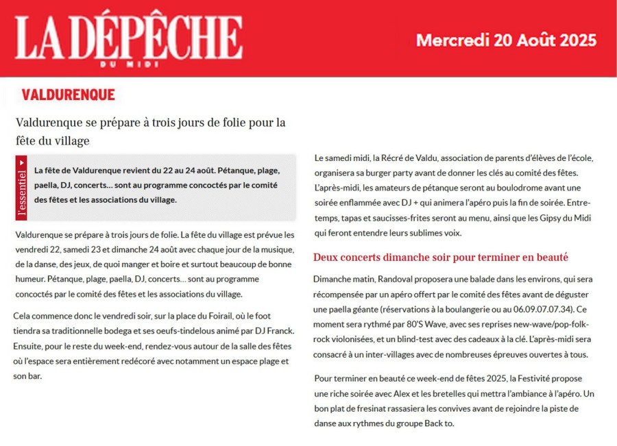 paru le 16 août 2022 sur La Dépêche