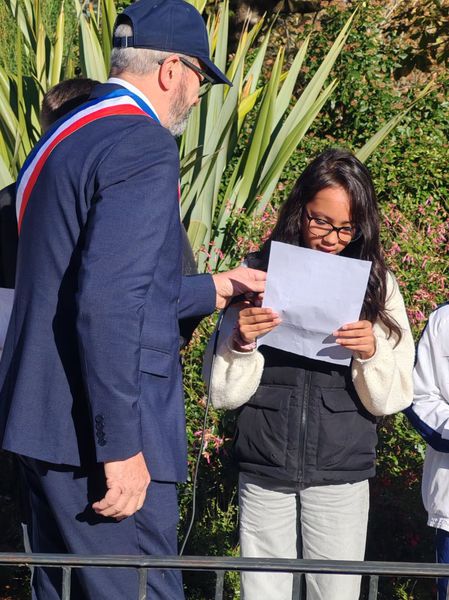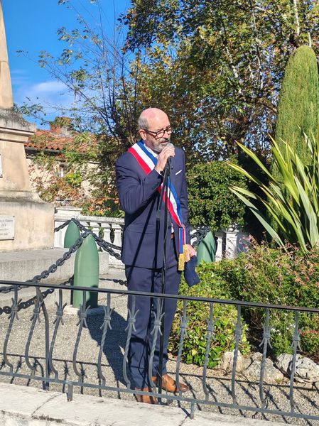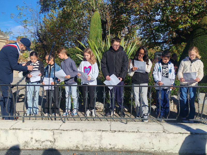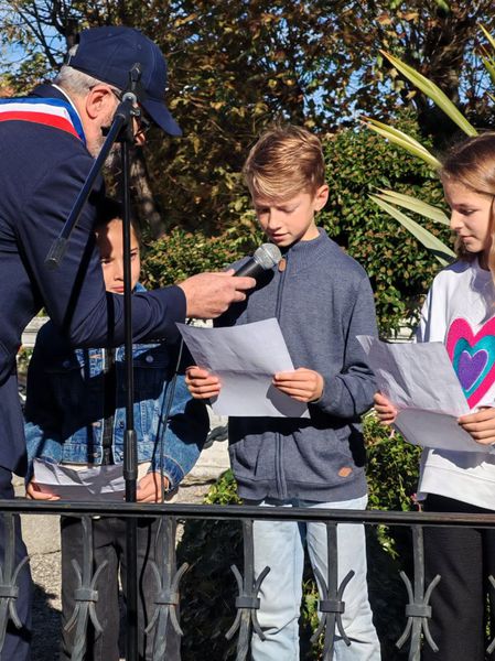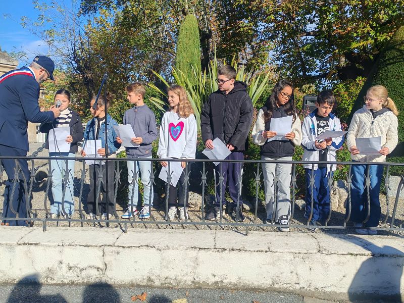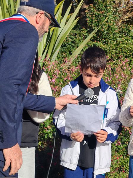 Monsieur le Maire entouré de ses adjoints et de porte-drapeaux ont déposé une gerbe au monument aux morts et observé une minute de silence en signe de recueillement.